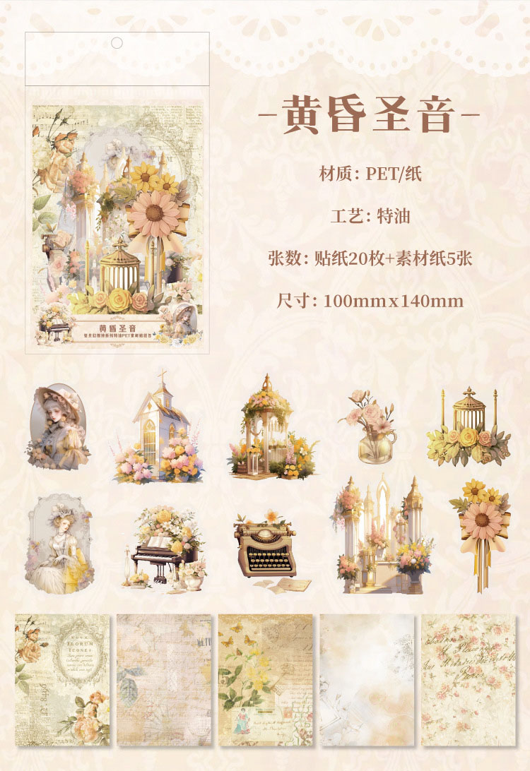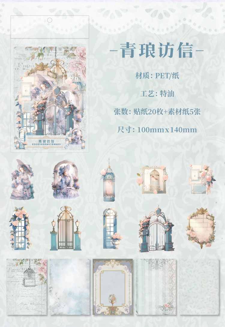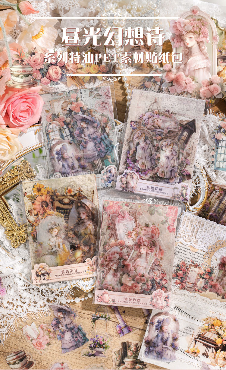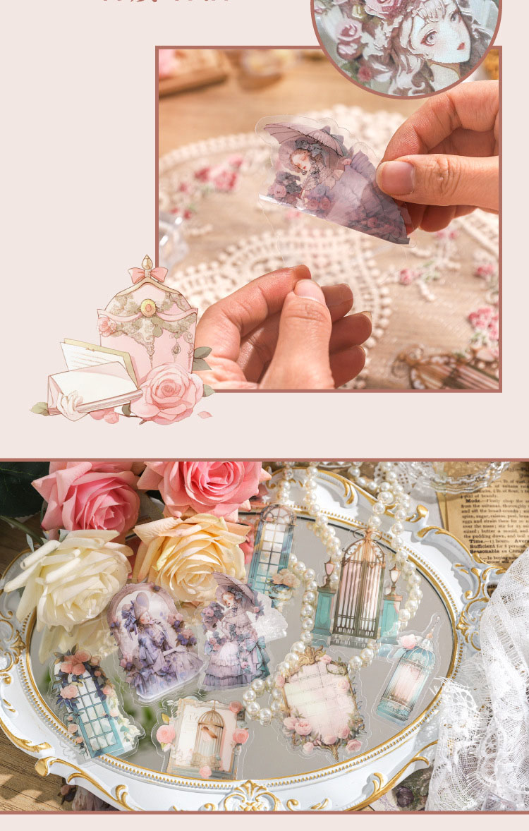 現在カテゴリ:全て商品 > カフェ風 PETステッカー アンティーク ガール少女 窓 花フラワー イラスト シール20枚+素材紙5枚
