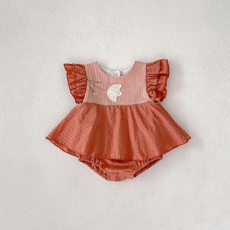春夏新作 ガールズ 連体服 韓国風子供服 0-3歳 花柄 スカート付 ロンパース カバーオール 66-90