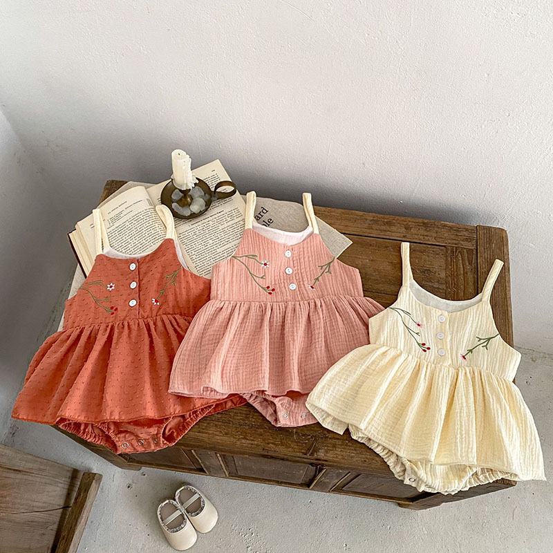 春夏新作 ガールズ 連体服 韓国風子供服 0-3歳キッズ スカート付 花柄 ロンパース カバーオール 66-90