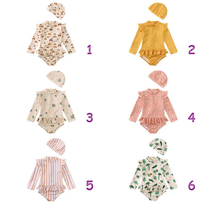 「2024」子供服★水着+帽子★長袖★速乾★韓国風子供服★6色80cm〜130cm