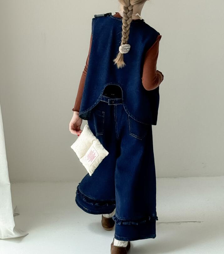 2024秋新作ZL★子供服 デニムベスト+ズボン セットアップ★100cm〜150cm