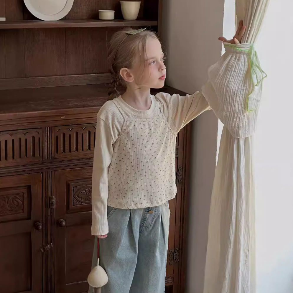 2024秋新作HL★子供服 トップス+吊りベスト セット★90cm〜140cm 2色