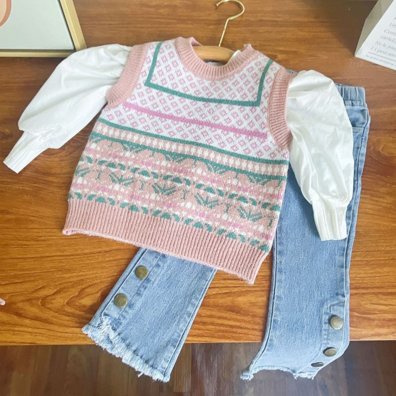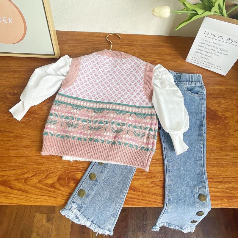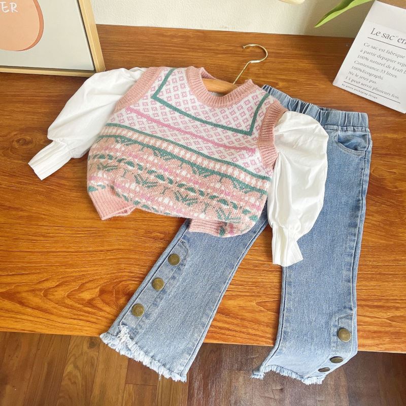 「2024」子供服★長袖シャツ+ベスト+ジーンズ★セットアップ★韓国風子供服★100cm〜140cm