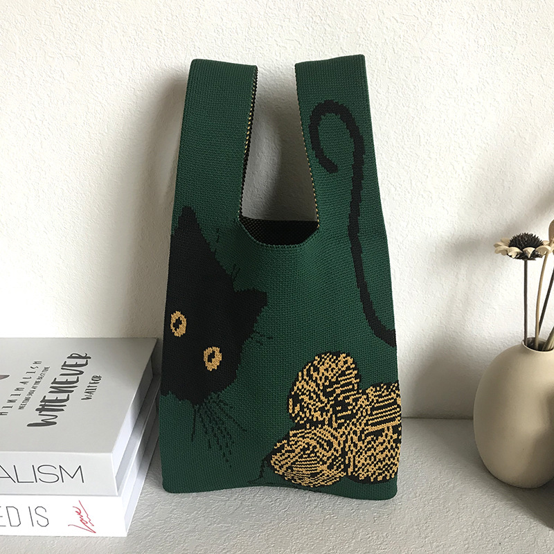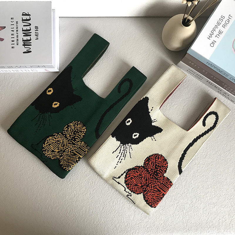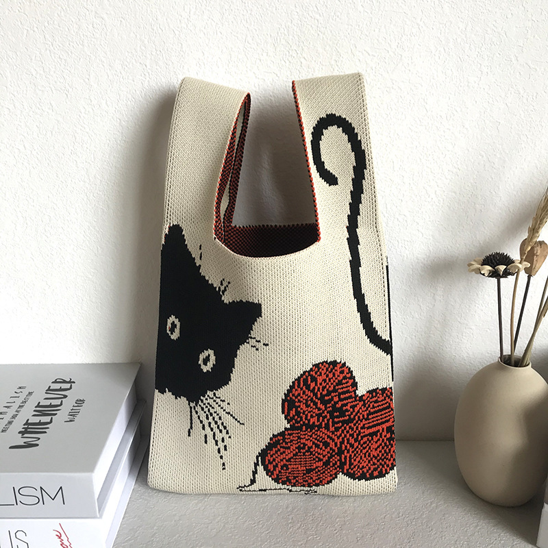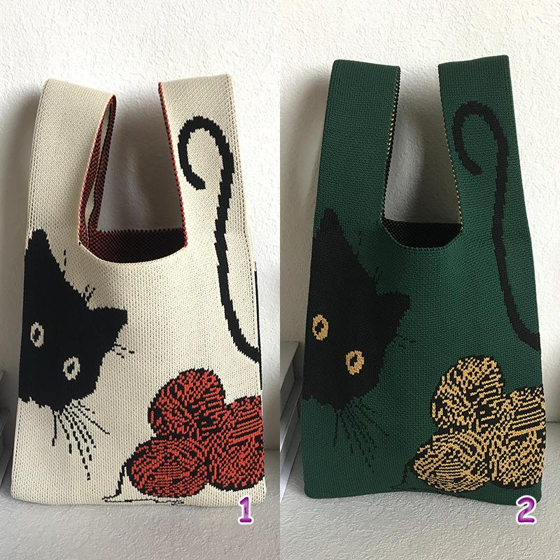 「2024」バッグ★ニットバッグ★猫柄★ハンドバッグ★ 2色