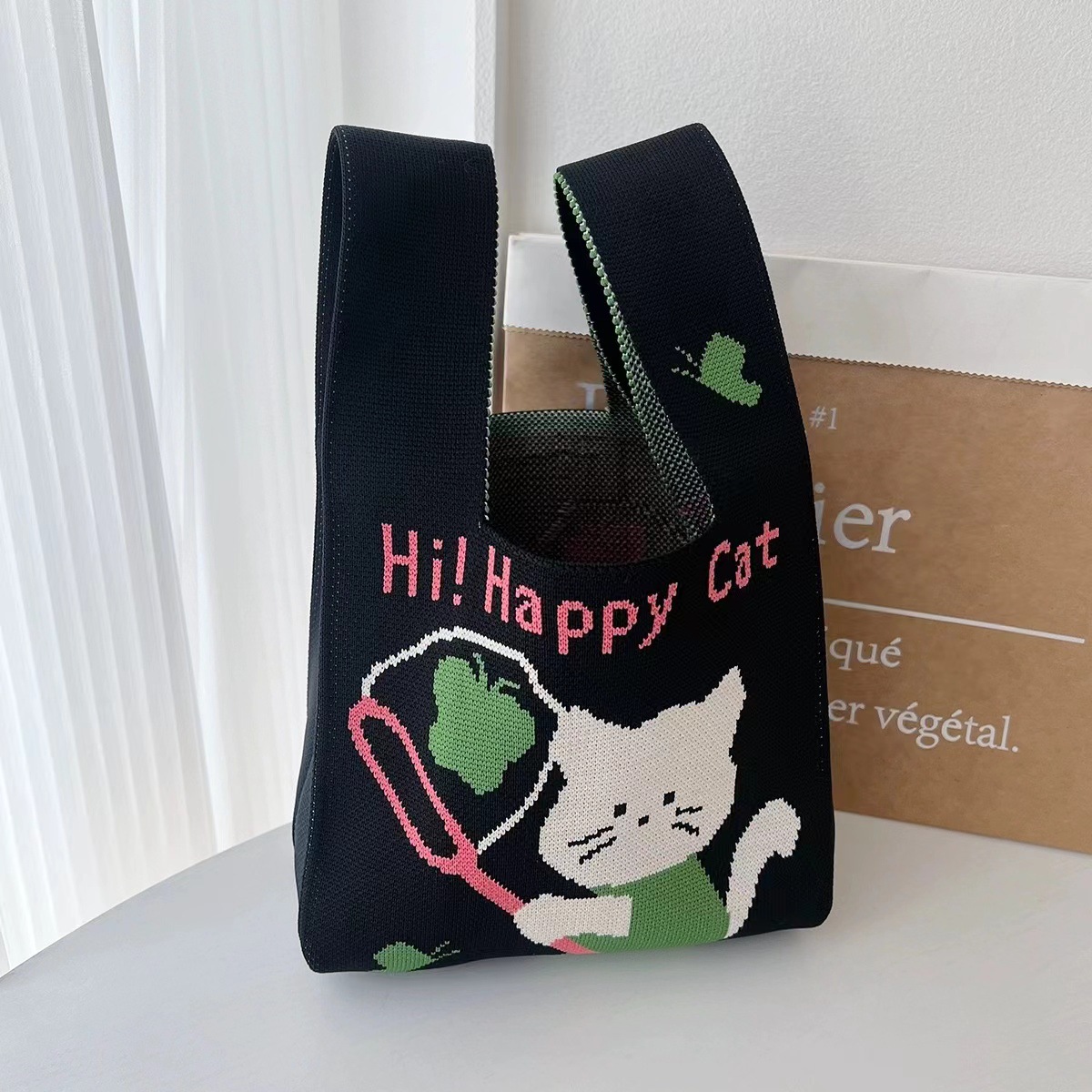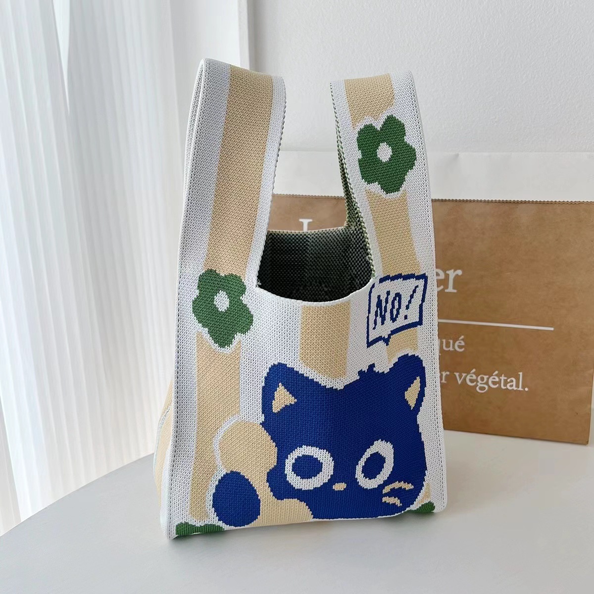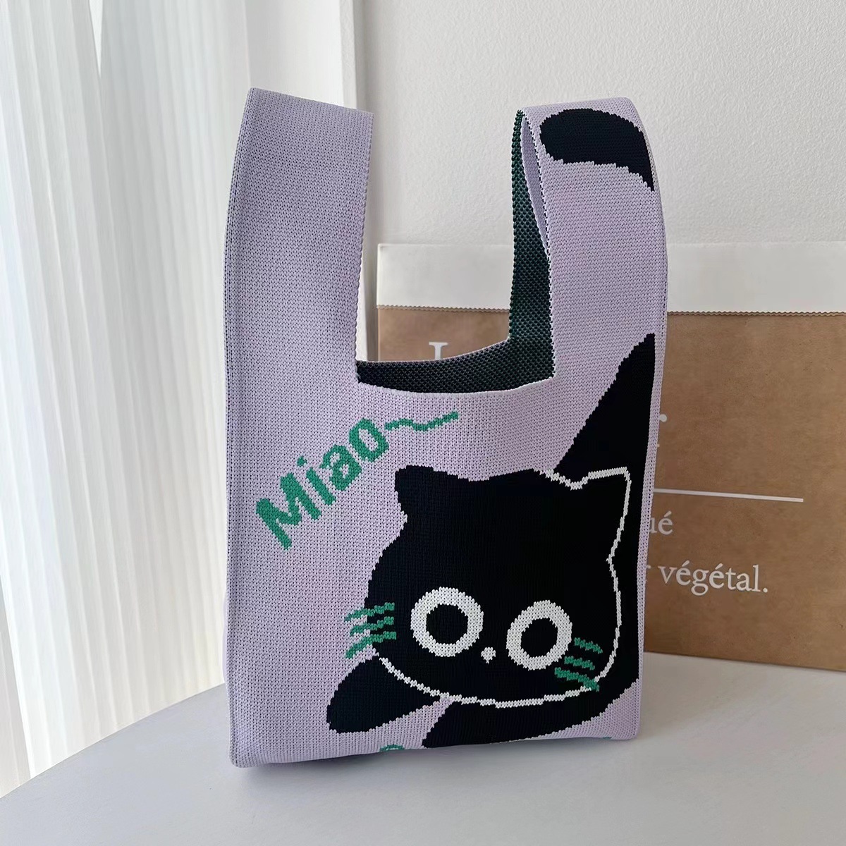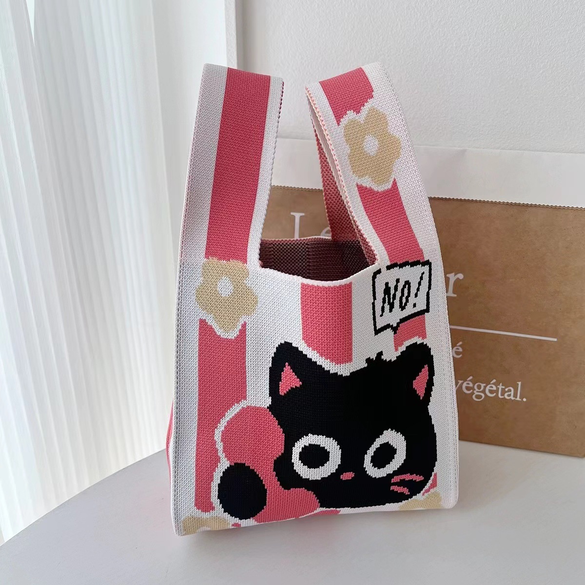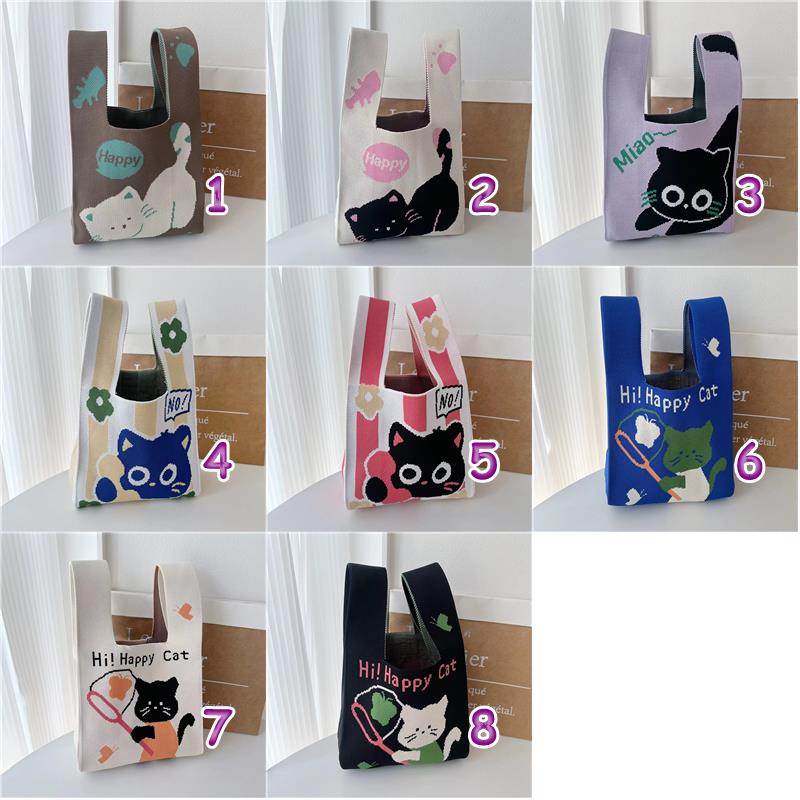 「2024」バッグ★ニットバッグ★猫柄★ハンドバッグ★ 8色