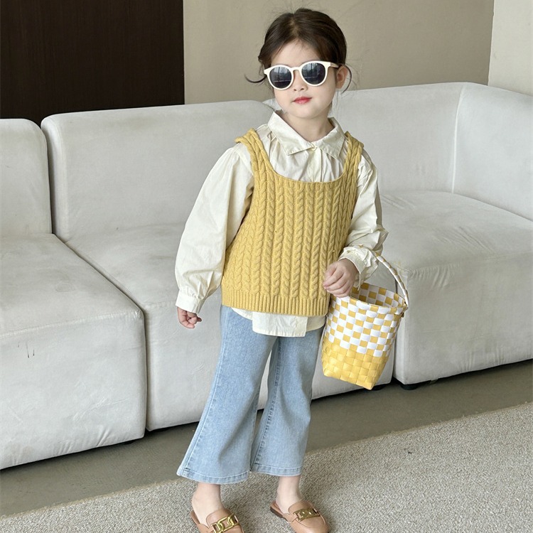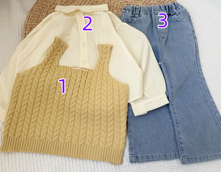 「2024」子供服★長袖シャツ★ニットベスト★ジーンズ★韓国風子供服★3色90cm〜140cm
