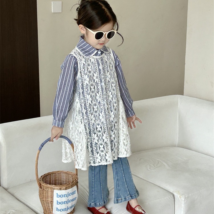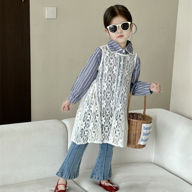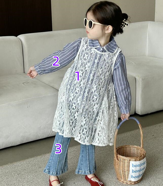 「2024」子供服★長袖シャツ★レースワンピース★ジーンズ★韓国風子供服★3色90cm〜140cm