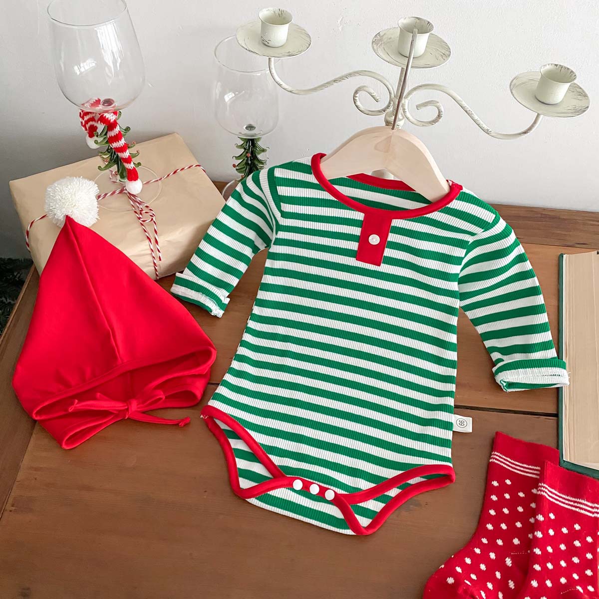 現在カテゴリ:全て商品 > 2024新入荷★ベビー服 クリスマス服 ロンパース+帽子★66cm〜90cm 2色
