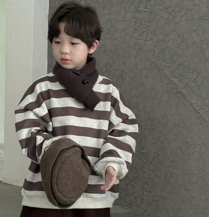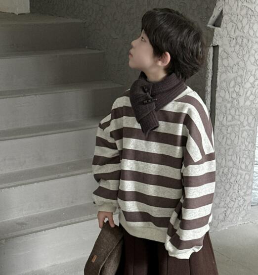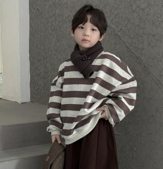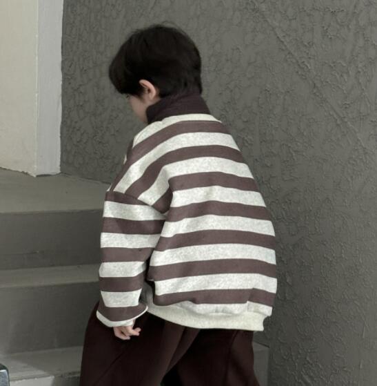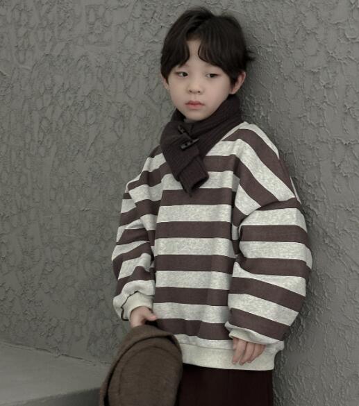 「2024」子供服★トップス★長袖★裏起毛★ストライプ★韓国風子供服★100cm〜160cm