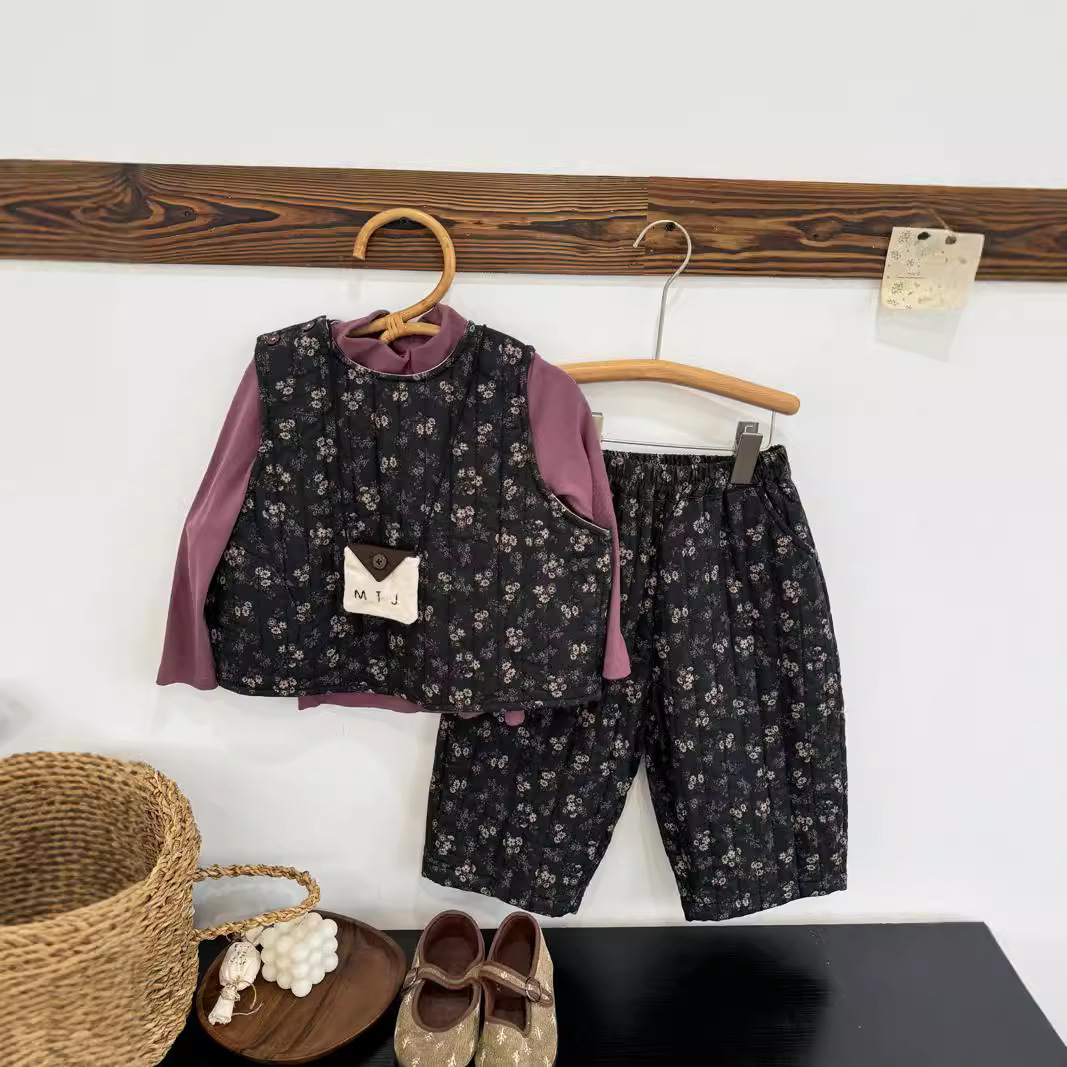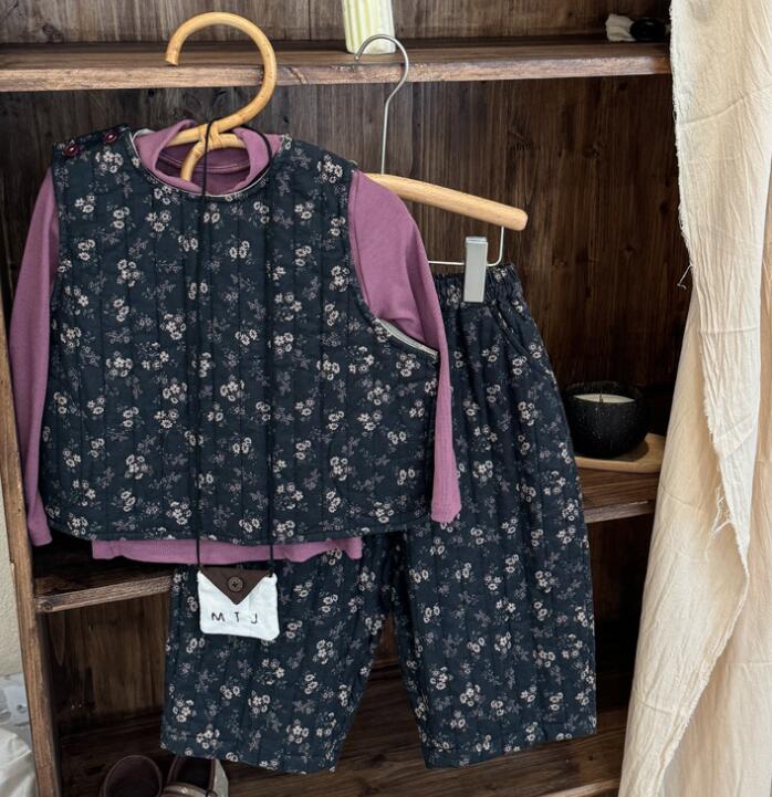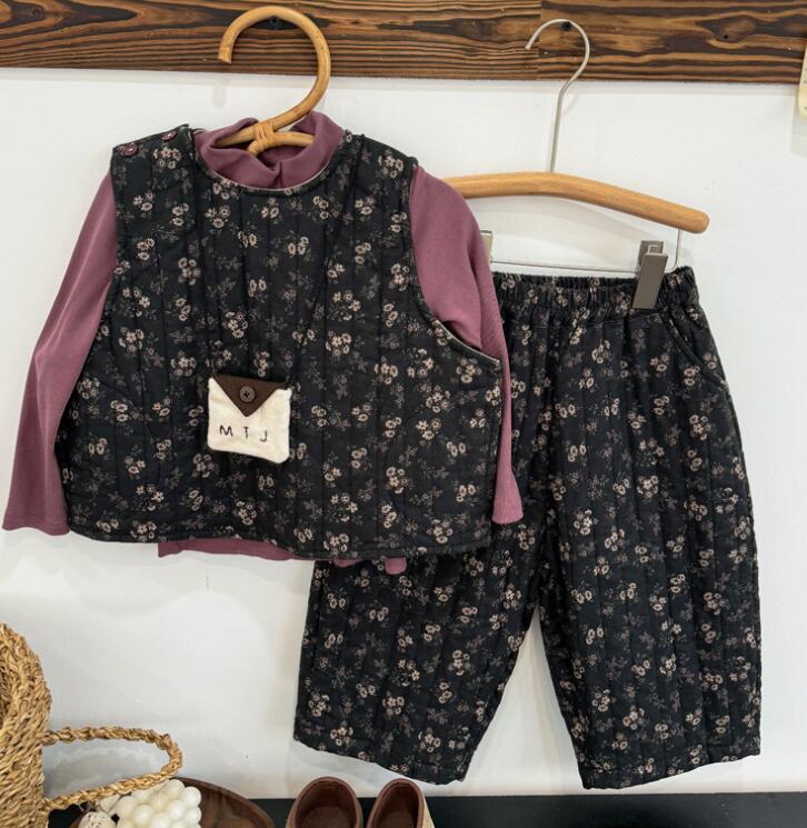 「2024」子供服★Tシャツ★ベスト+ズボン★花柄セットアップ★韓国風子供服★2色80cm〜140cm