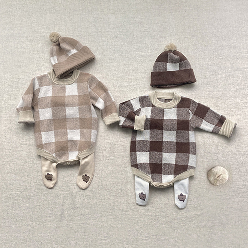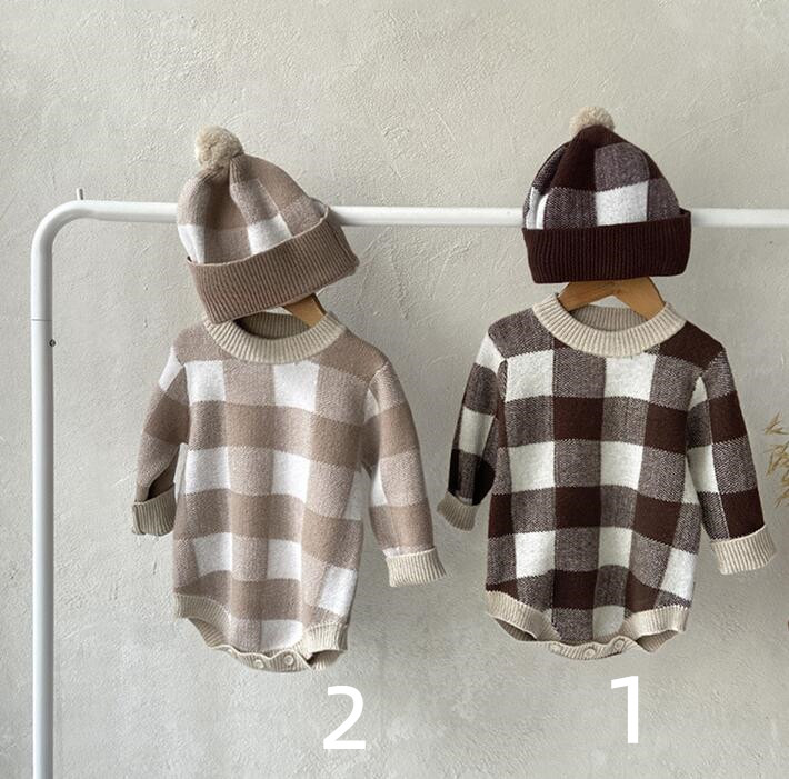 2024新入荷★ベビー服 ニットロンパース+帽子★66cm〜90cm 2色