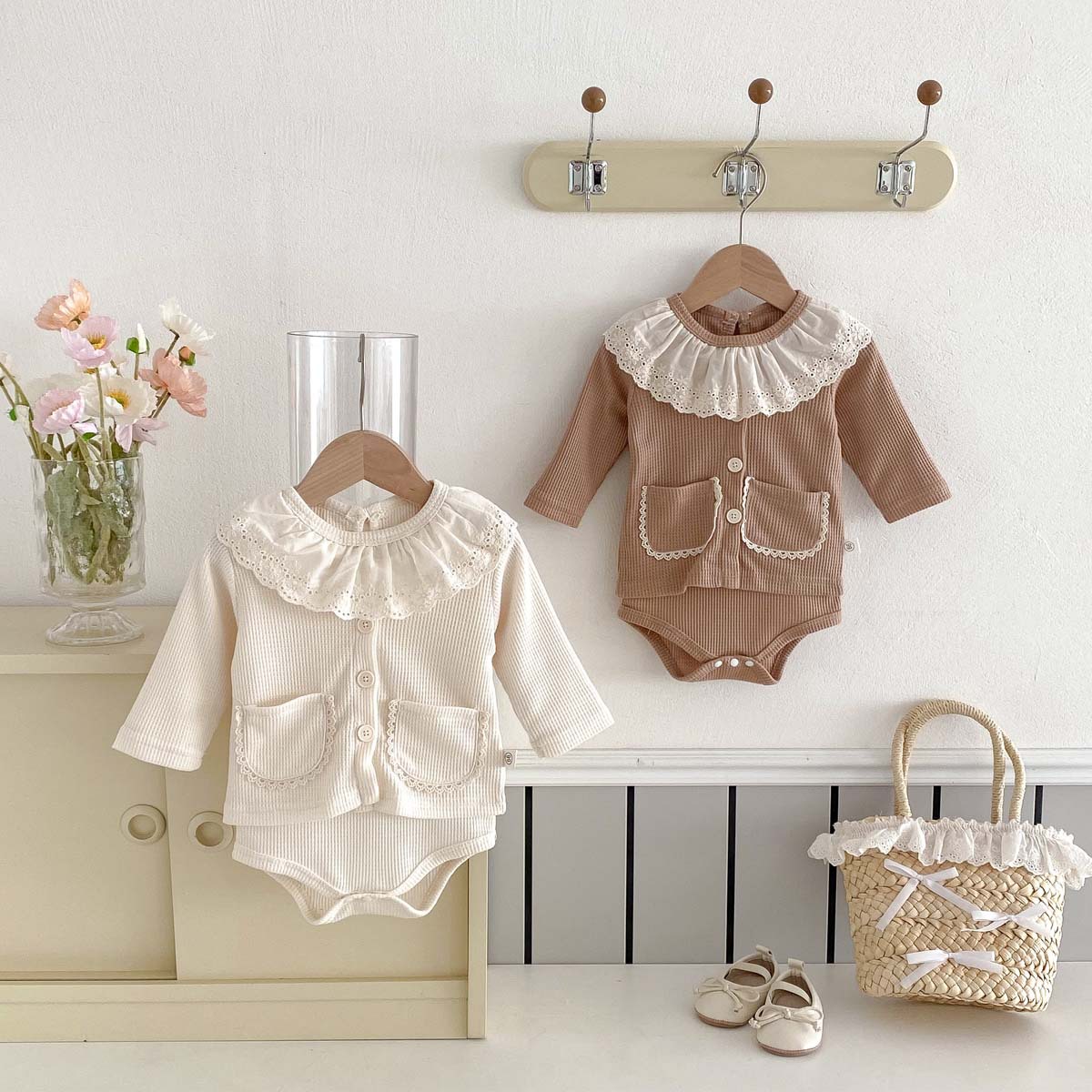 現在カテゴリ:全て商品 > 2025新入荷★ベビー服 ロンパース&カーディガン分けて★66cm〜90cm 2色
