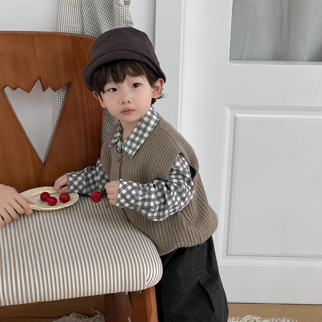現在カテゴリ:全て商品 > 2025新作★子供服 格子シャツ&ニットベスト&ズボン分けて★73CM〜100cm