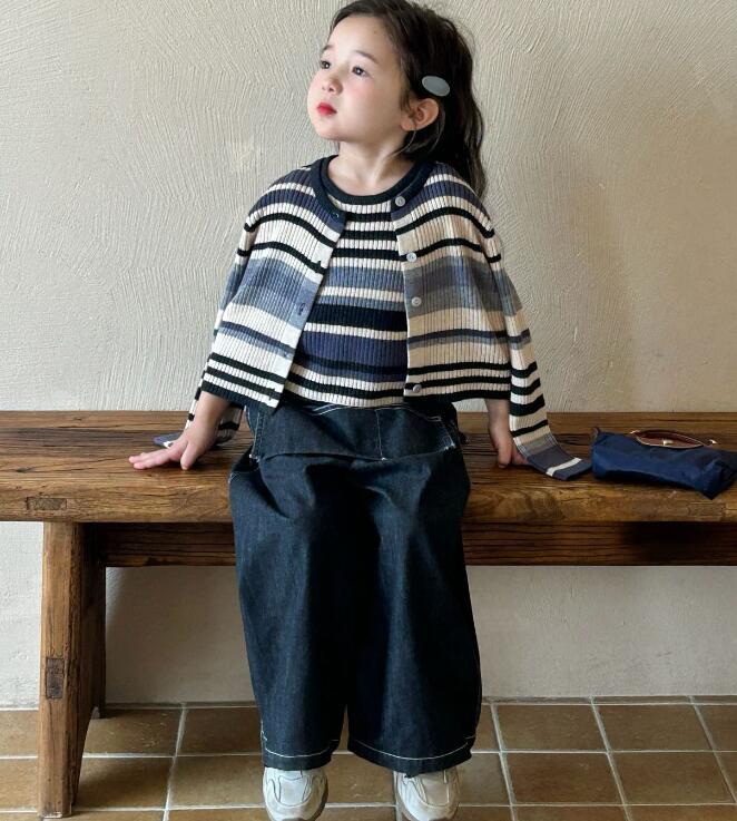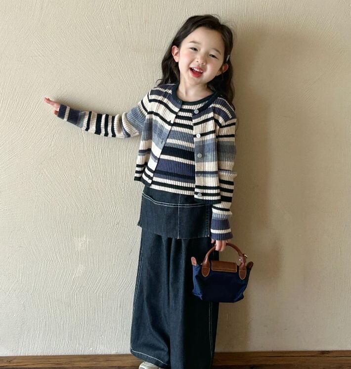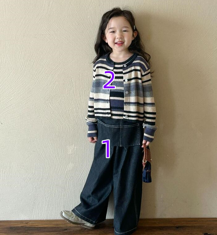 「2025」子供服★トップス★ベスト+カーディガン★ジーンズ★韓国風子供服★2色7#〜17#