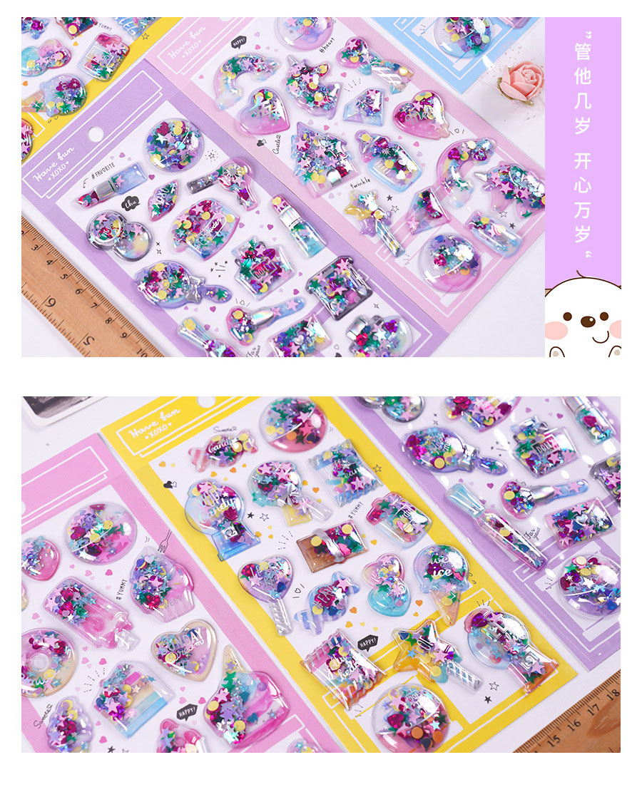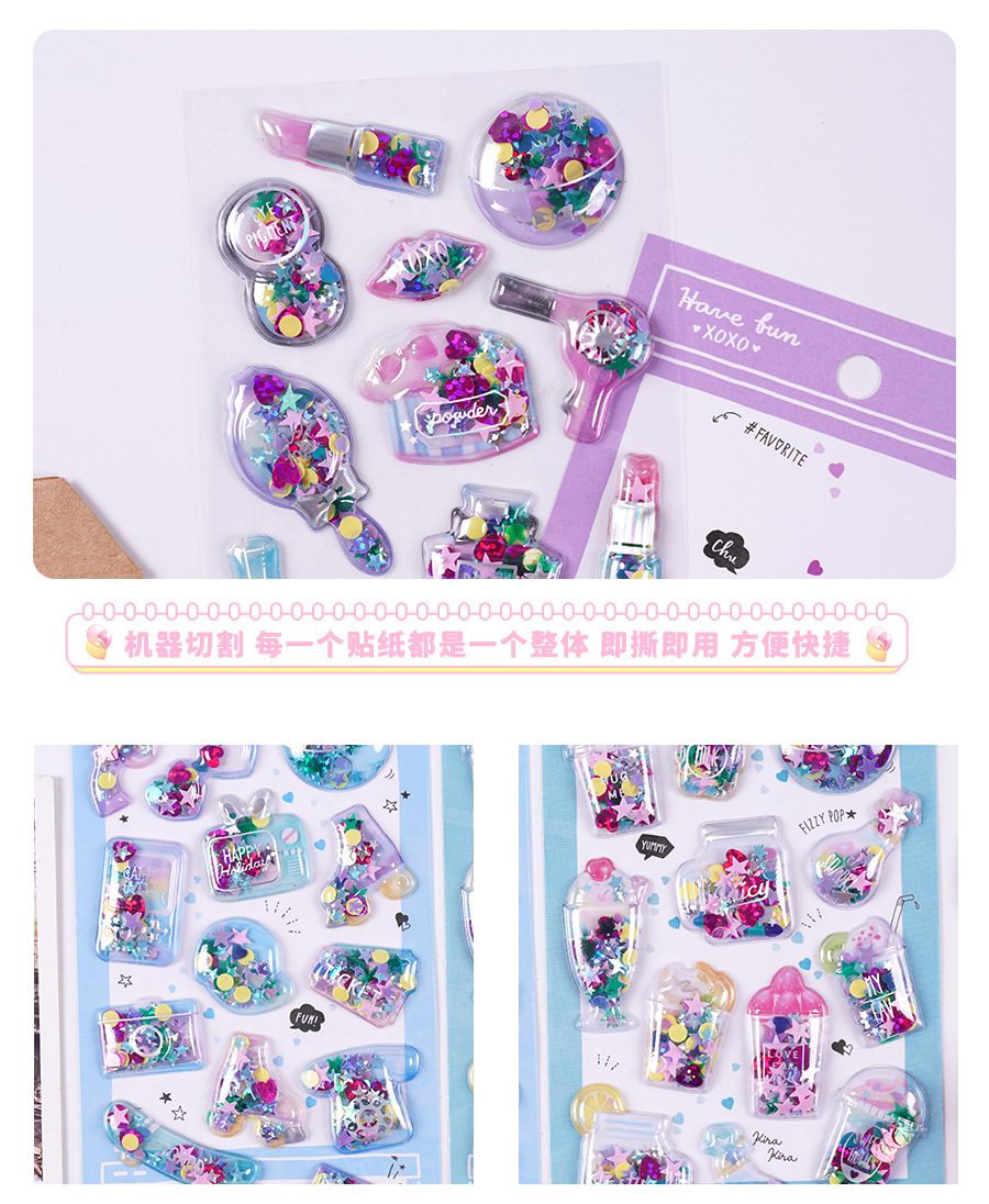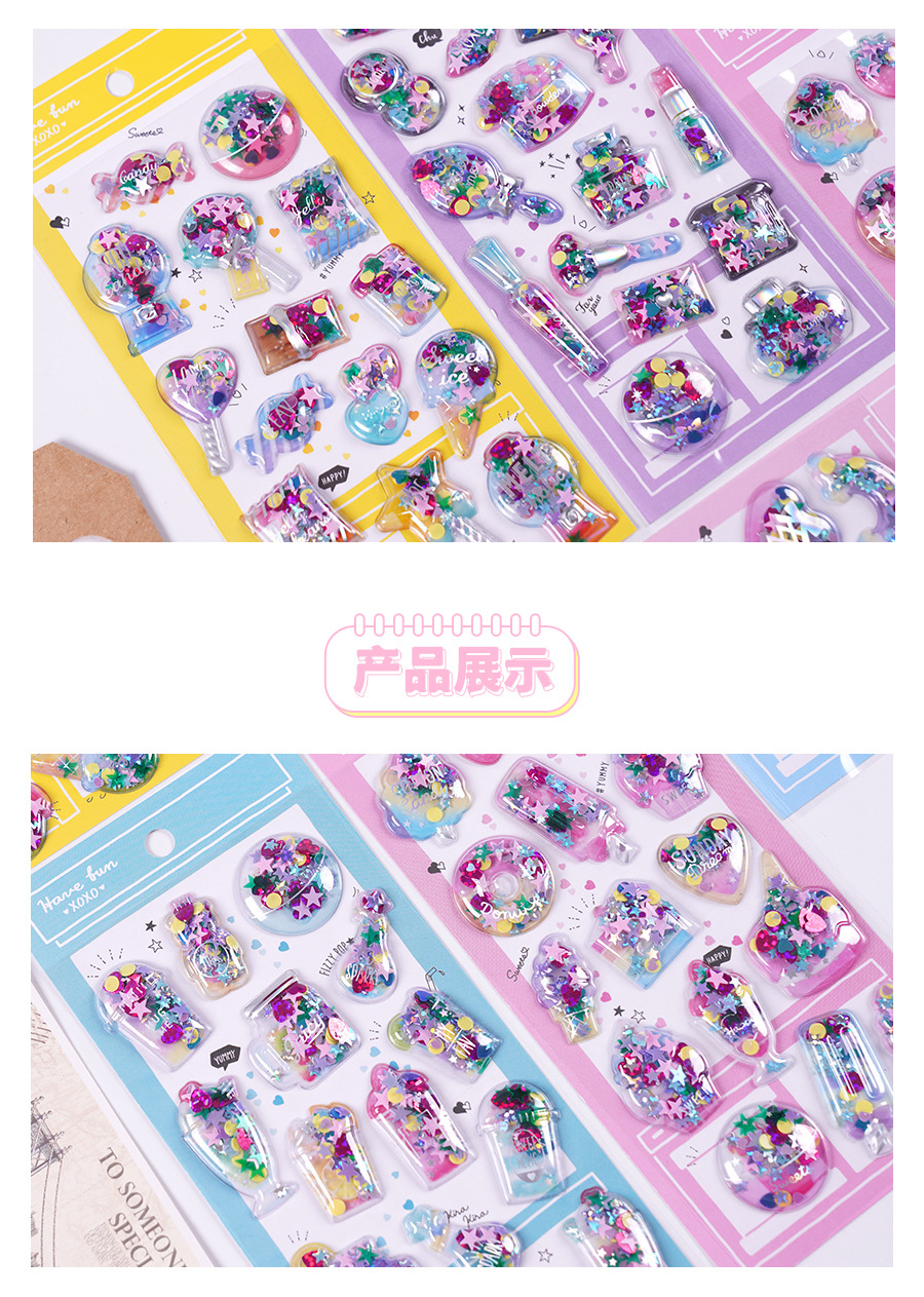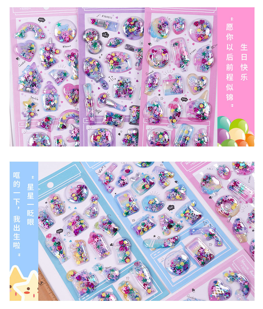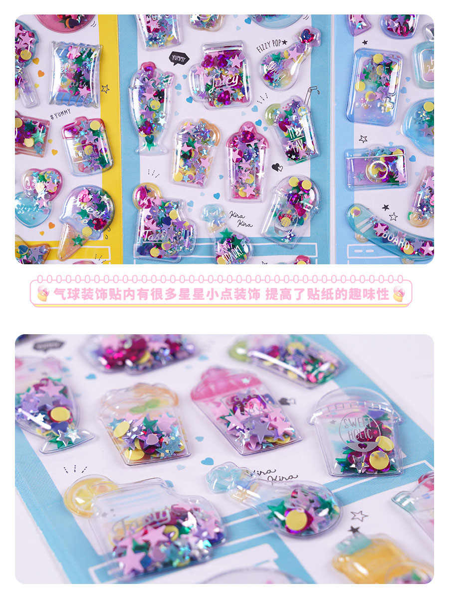 手作りDIY ぷくぷく ボンボンシール 3D立体ステッカー ぷっくりシール 中空 スパンコール