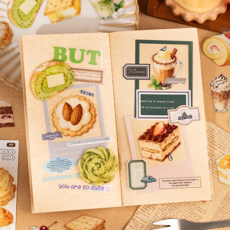 【シールセット】洋菓子ホリデー / スイーツ ドリンク柄 手帳 デコレーション用 / コラージュ クラフト材料