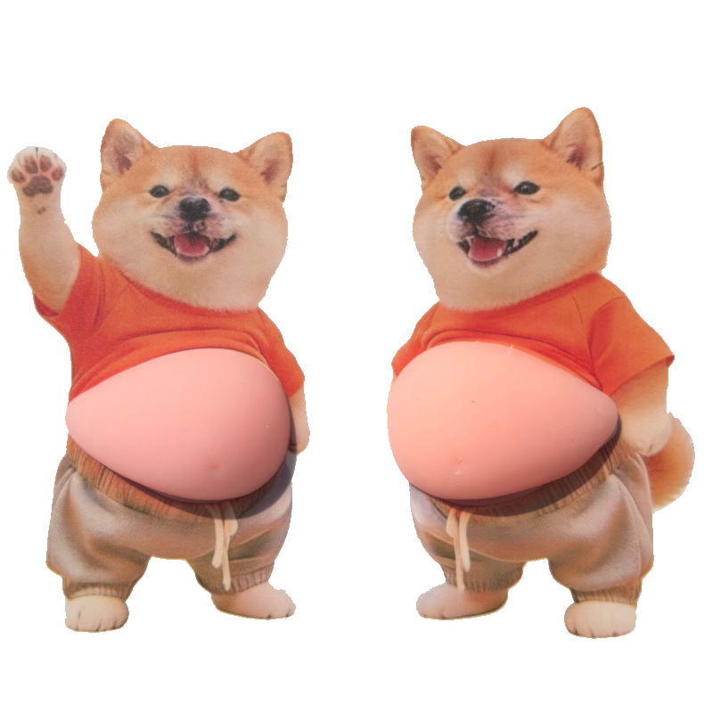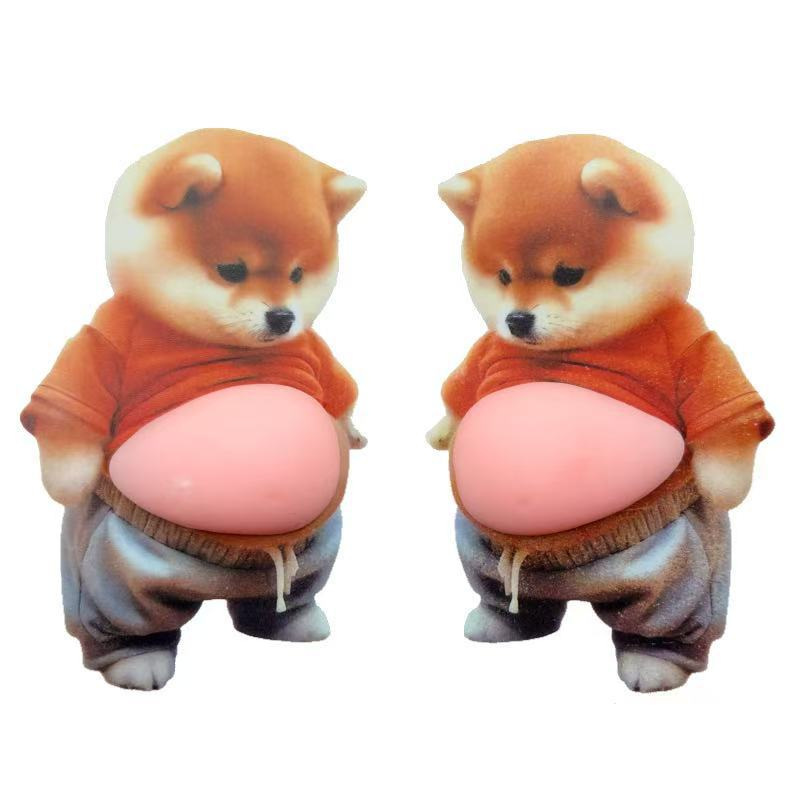 犬のぽっこりお腹 スクイーズ / ステッカー ストレス解消おもちゃ / ユニークなぷにぷにフィギュア