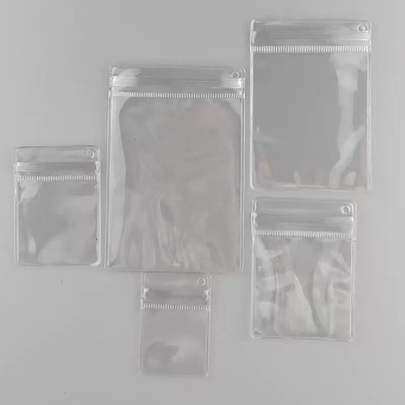 【透明サイドホール袋】PVC製 掛け穴付きチャック袋 / アクセサリー収納 吊り下げ密封バッグ