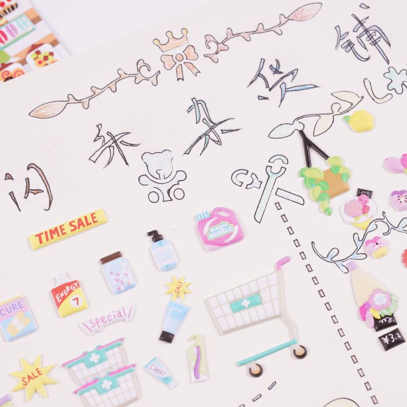 DIY手作り ステッカー★粘着シール★3D★手帳素材